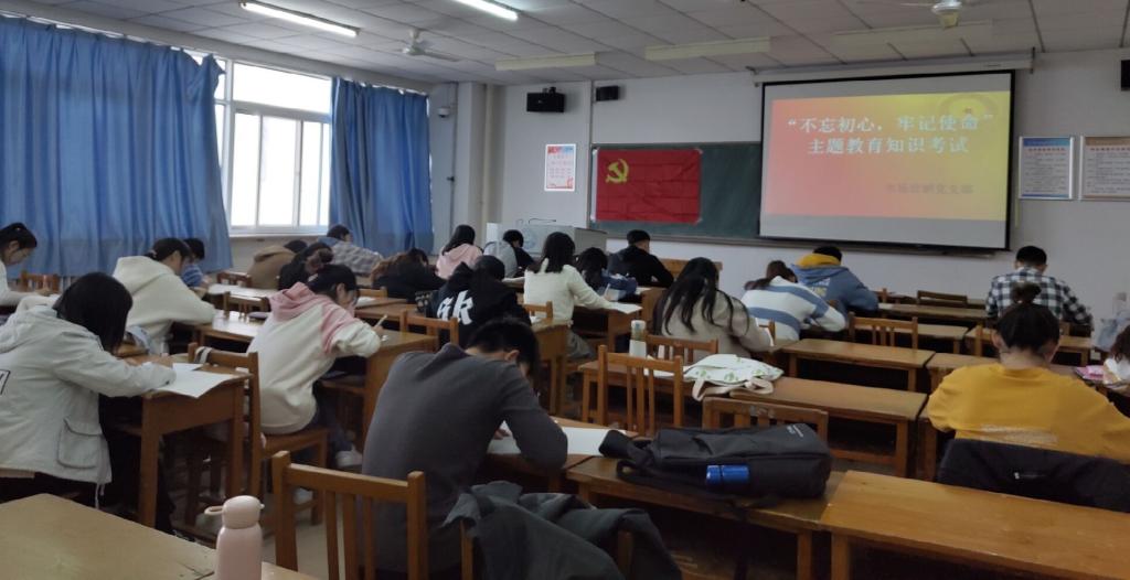 响应“不忘初心,牢记使命”主题教育开门办教育号召,市场营销党支部2019年11月14日14:30在A514教室对入党积极分子进行了“不忘初心,牢记使命”主题教育应知应会知识测试。