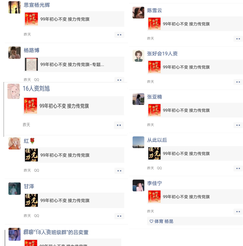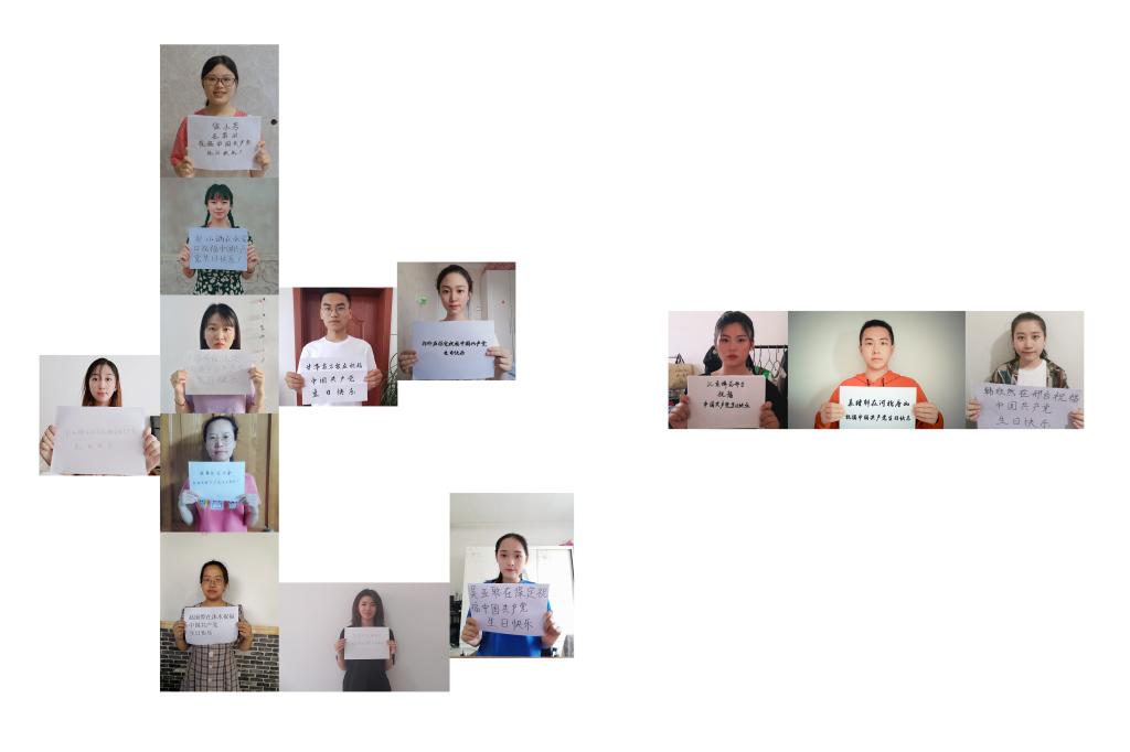 99年来,无论是弱小还是强大,无论是顺境还是逆境,我们党都初心不改、矢志不渝,紧紧依靠人民,不断在新时代展现新作为、书写新篇章。作为新时代的“后浪”的支部成员们也在此特殊的日子里,秉承先贤初心,信仰如山、信念如铁、信心如磐,通过“99年初心不忘,接力传党旗”、“全体成员手写祝福”等形式,为党献上洋溢着青春气息的“贺礼”。