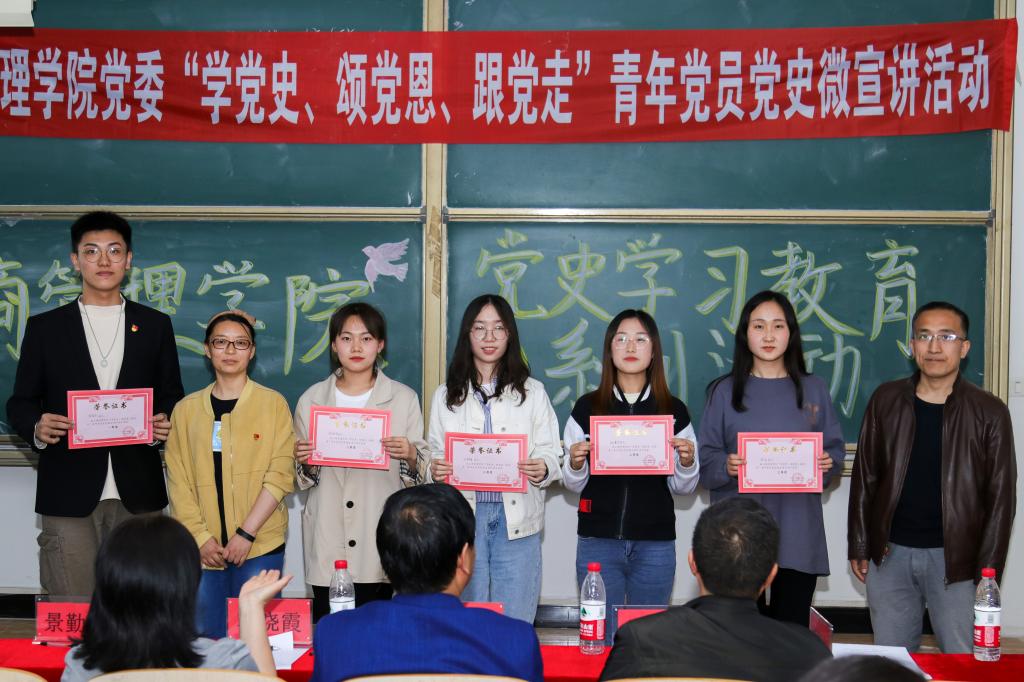 为引导党员师生从百年党史中感悟思想伟力,汲取奋斗力量,5月13日下午,工商管理公司党委举办“学党史、颂党恩、跟党走”青年党员党史微宣讲活动。青年党员教师和员工党员代表共计28人参加了比赛,公司经理黄立明、副书记副经理韩晓霞、原公司党委书记刘恩峰、教工党支部委员景勤娟、柴朝华作为评委出席,公司全体党员师生观看了比赛。