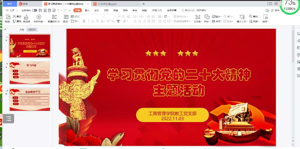 根据公司党委和公司党委的工作安排,2022年11月3日,bevictor韦德国际教工党支部在腾讯会议举行了学习贯彻党的二十大精神主题活动。