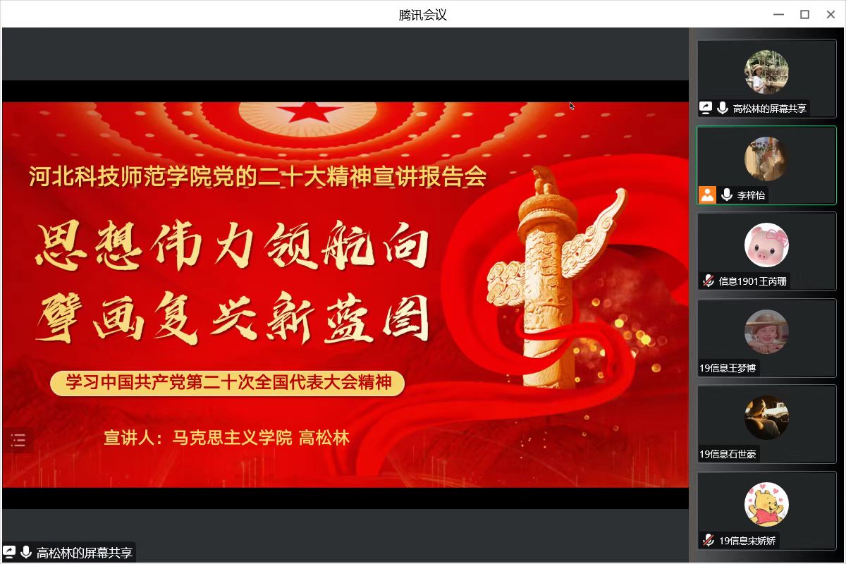 同学们纷纷表示,宣讲报告讲解生动详细,角度全面,用大量的实例让我们对二十大报告内容理解更加深刻,使我们获益匪浅。作为新时代青年,我们要深学笃信、脚踏实地,要自觉做走在时代前面的奋斗者、开拓者、奉献者,为中华民族伟大复兴做出更多更大贡献。(撰稿人:杜江萍,审核人:韩晓霞)