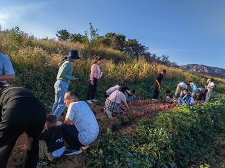 下午一行人前往官石东沟村采摘园,采摘园空气清新宜人,沿着小路漫步,观赏着诱人的红薯,老师们都迫不及待地拿起篮子,开始了采摘的旅程。采摘间同事们有说有笑,享受着挖红薯的乐趣,采摘的过程不仅探访了乡村美景,品尝秋收美食,更拉近了同事之间的距离,充满了欢声笑语。
