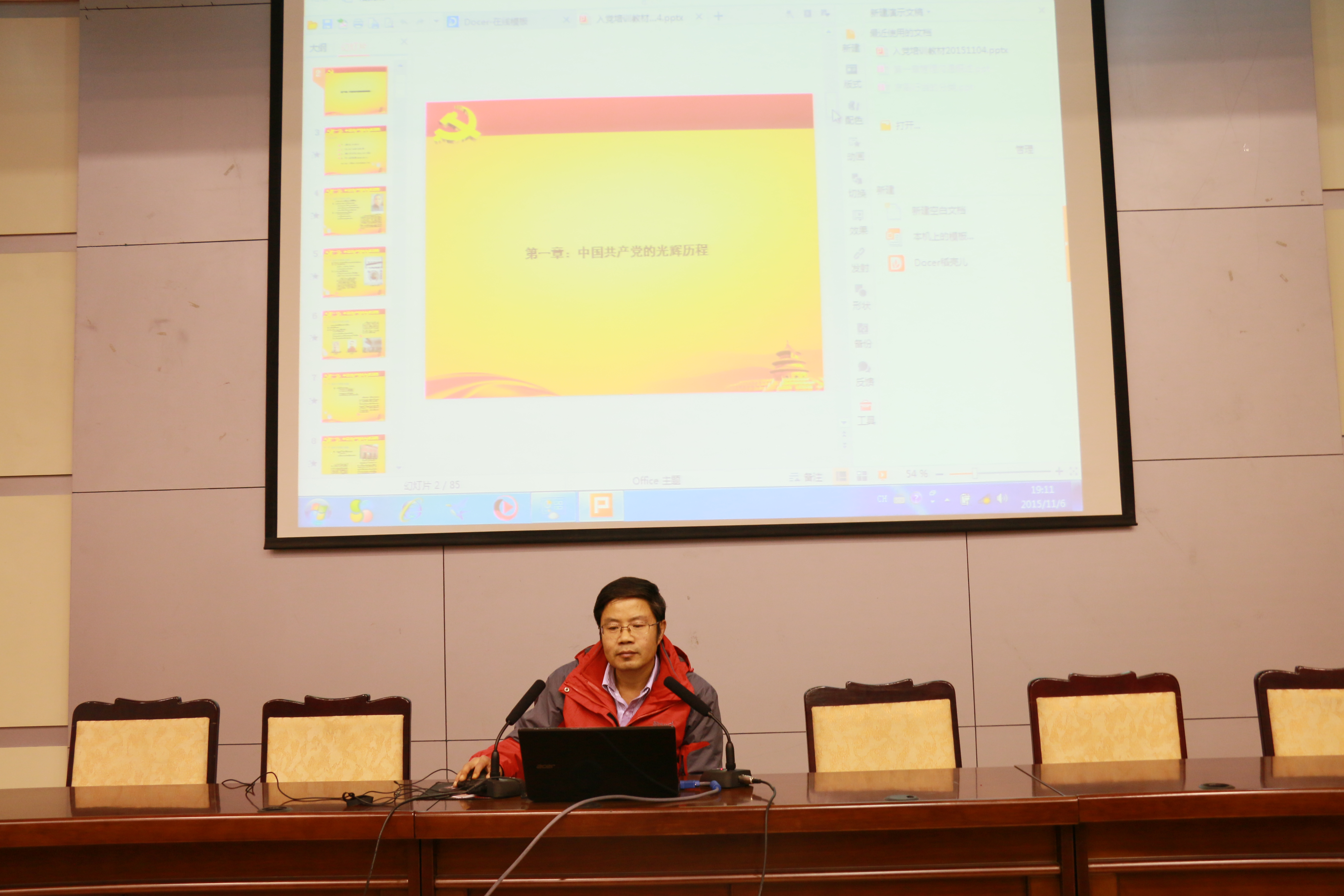 工商管理公司党委书记刘恩峰以专题讲座的形式为同学们上了第一堂党课。讲座中,他回顾了党的光荣历史,讲述了党的基本知识。他强调,作为一名要求入党的积极分子要了解党的历史,明确入党动机,牢记“为人民服务”的宗旨,要努力学习科学文化知识,用先进的科学理论武装自己,为争取早日加入党组织打下坚实的基础。