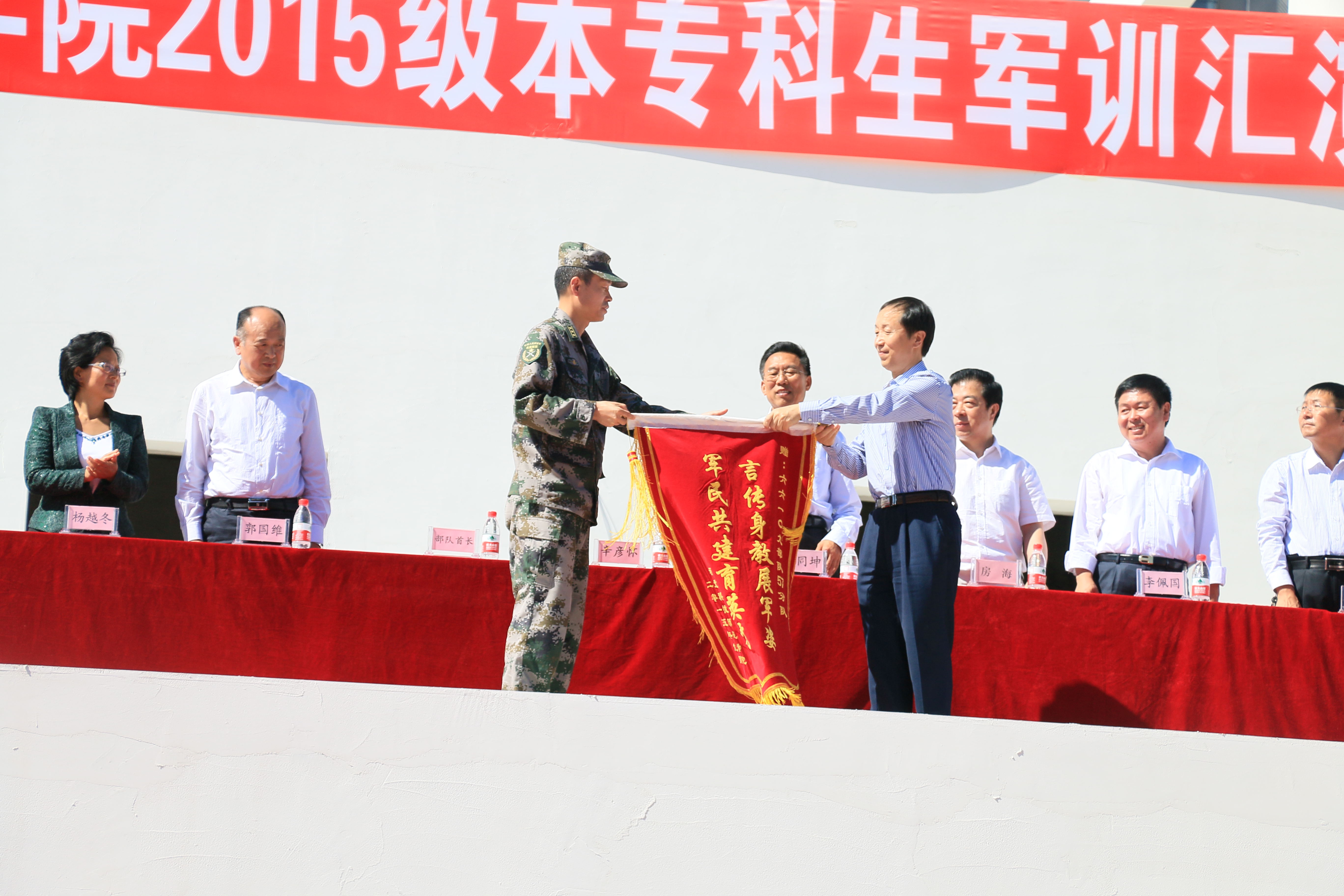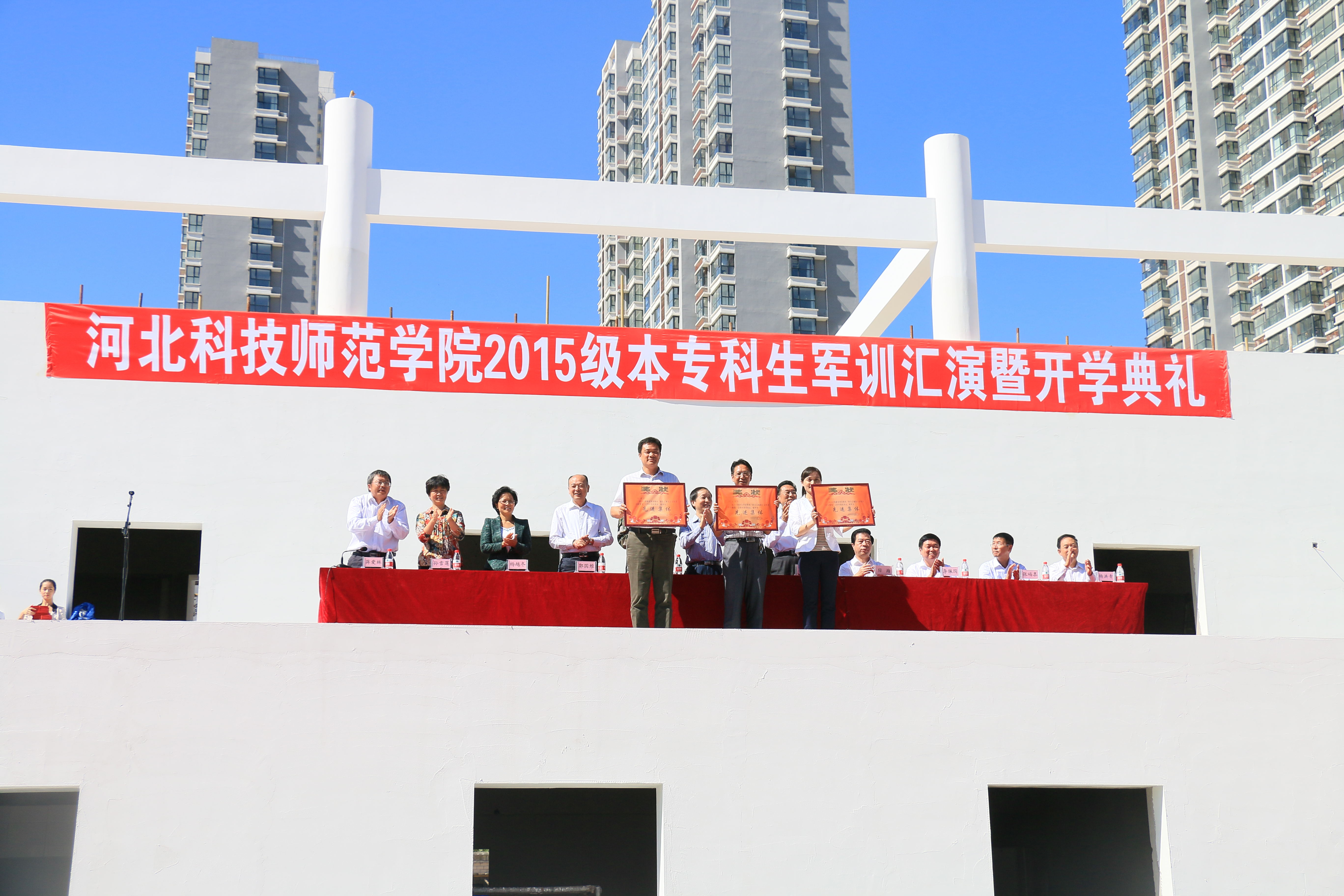2015年9月26日上午10:30韦德官方网站秦皇岛校区于后院操场举行2015级本专科生军训汇演暨开学典礼。