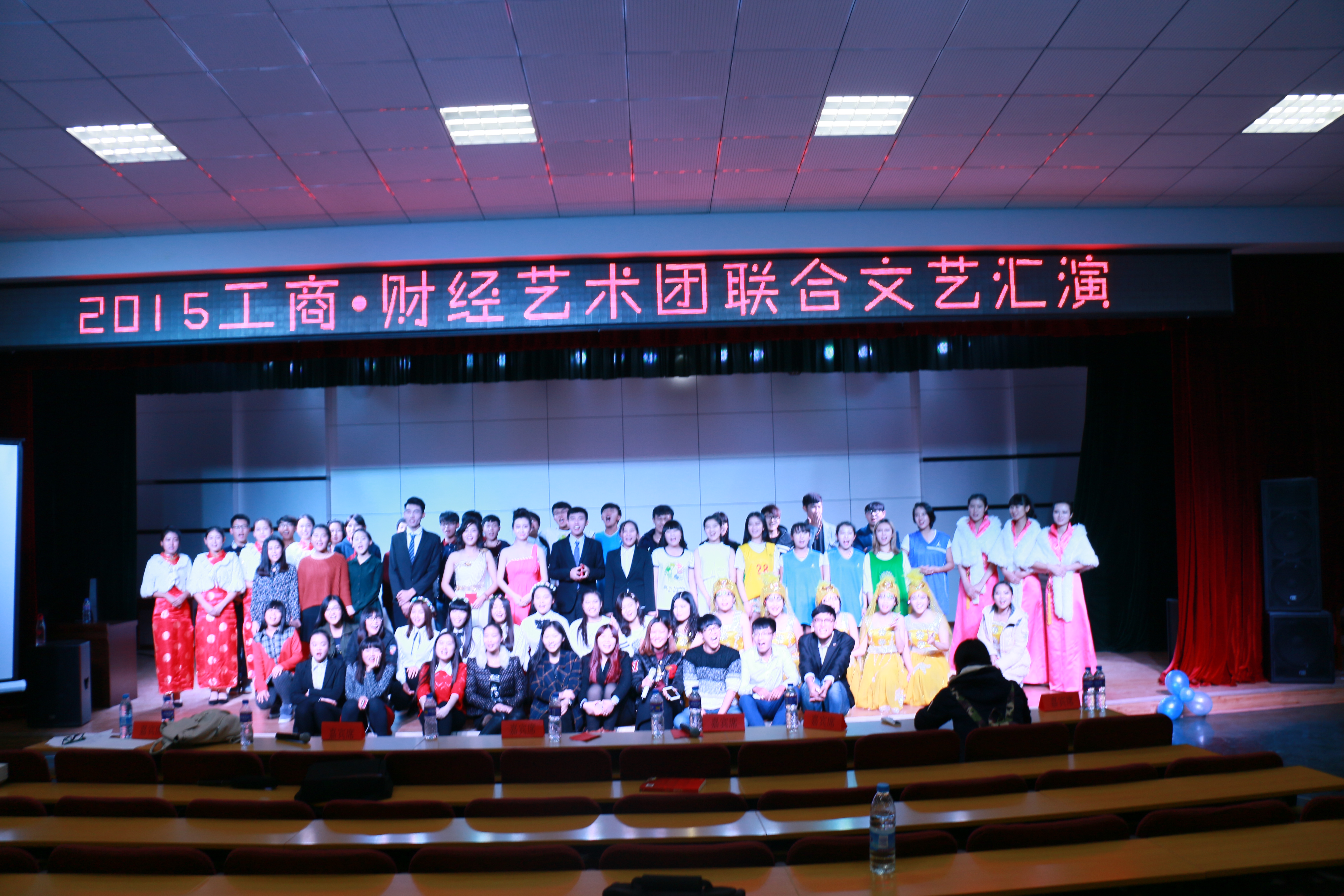 2015年11月10日晚7:00在多功能厅举行工商·财经艺术团联合文艺汇演,出席本次汇演的嘉宾有侯金柱教授,韩晓霞、胡建生老师以及各二级公司员工会主席 。