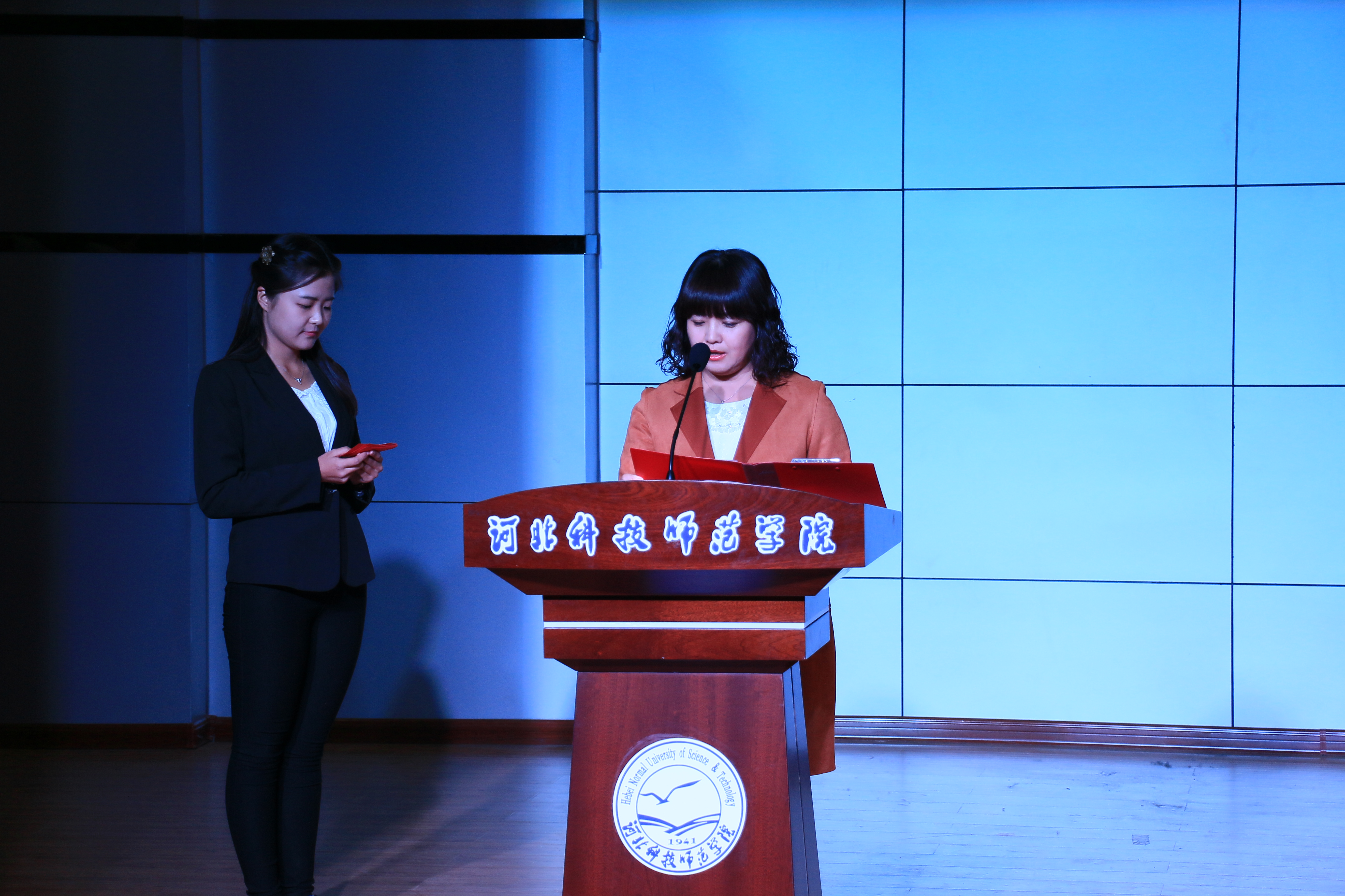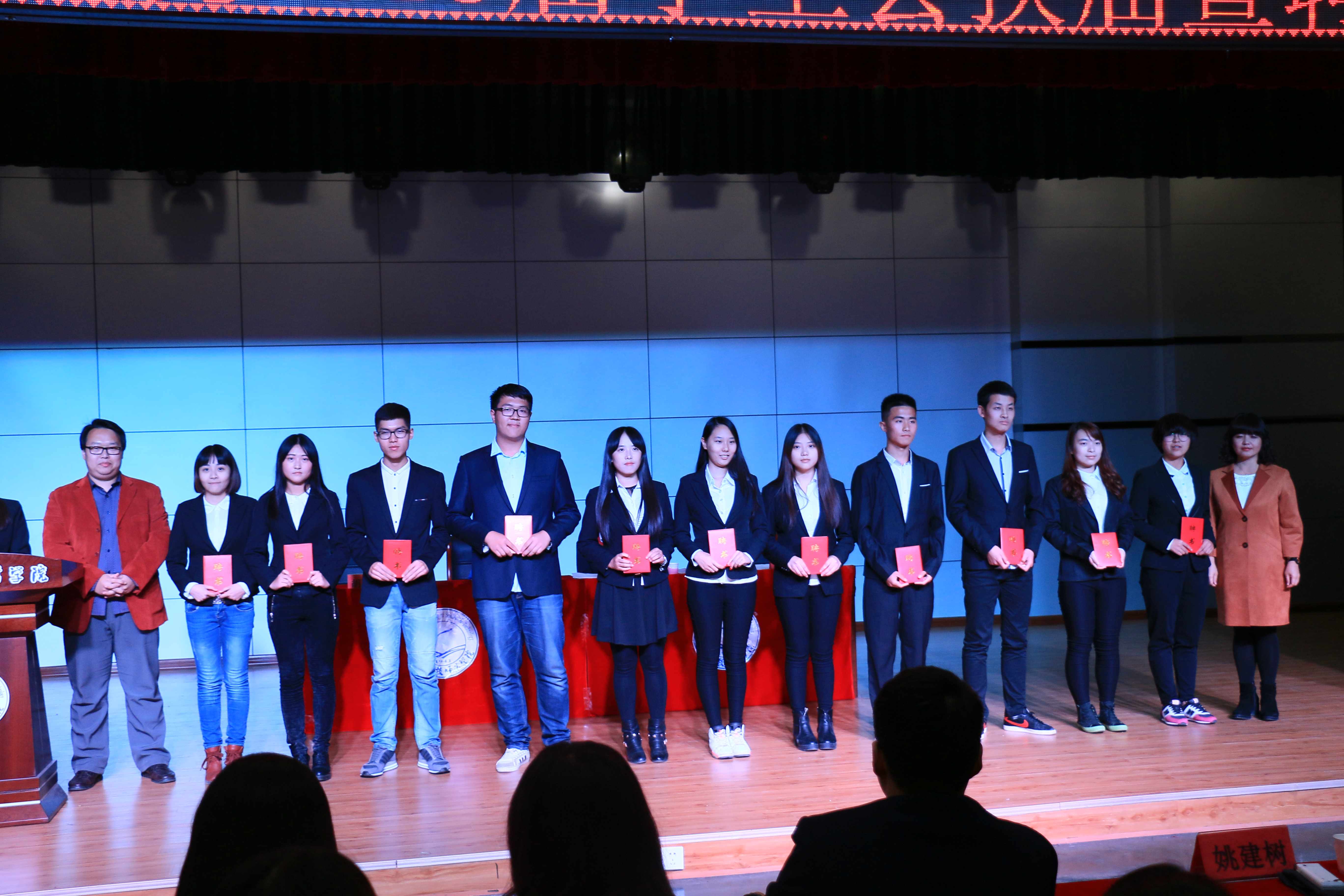 学工办韩晓霞老师和胡老师为2015届员工会部长副部长颁发证书