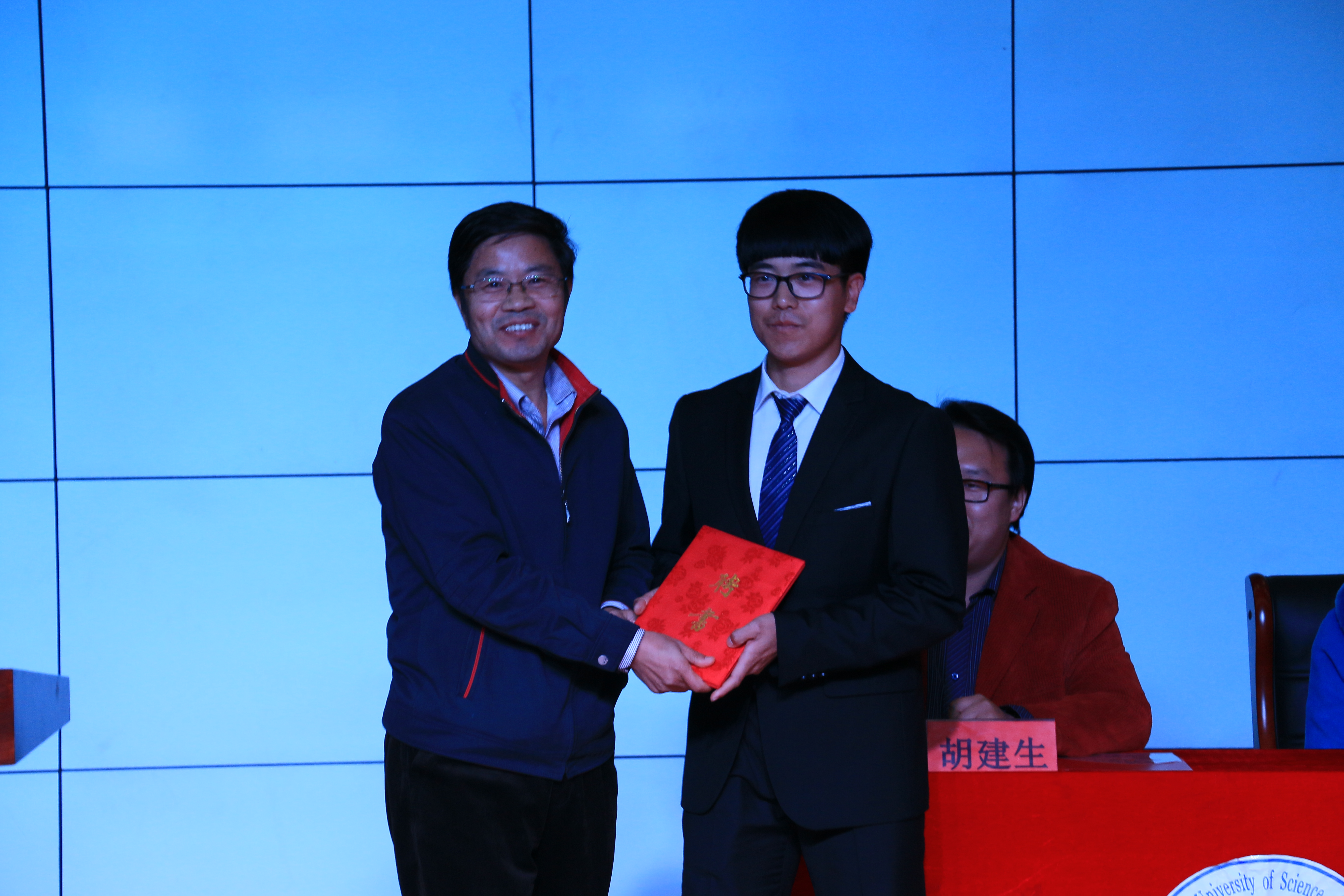 党委书记刘恩峰为2015届工商员工会主席王泽强颁发聘书